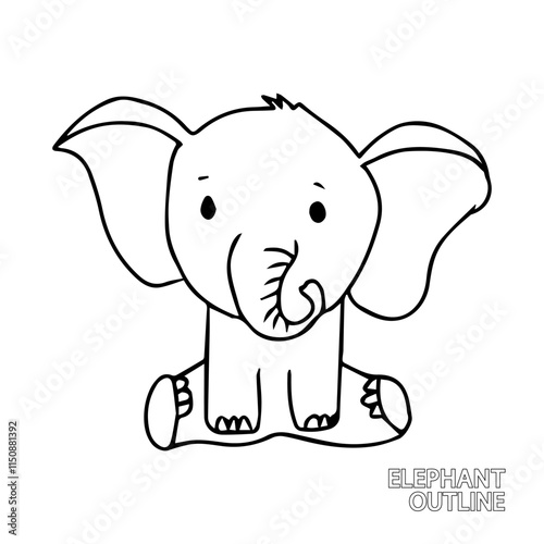 handrawing baby elephant cartoon isolated on white background. animal coloring book