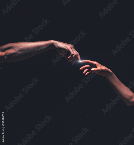 Hands concept. Dark background. Shadow. Hand. Love. Energy.