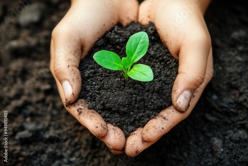 Hands Cradling Fertile Dark Soil with Emerging Sprout