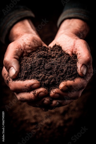 Hands cupped together showcase dark soil, symbolizing growth and connection to earth