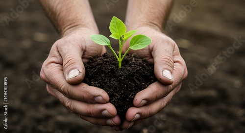 Hands Cupping Soil and Seedling Symbolizing Growth and Nature