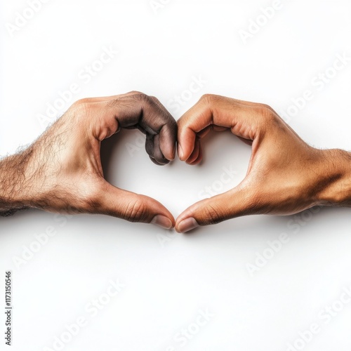Hands forming a heart shape symbolize love and connection between diverse individuals in a creative gesture