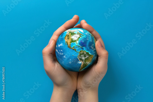 Hands Gently Holding a Miniature Earth, Representing Protection and Stewardship of Our Planet, Global Care