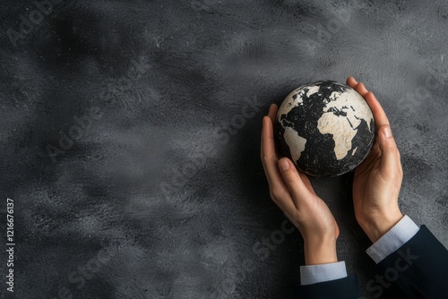 Hands Holding a Small Earth Globe on Dark Background Symbolizing Global Awareness and Responsibility