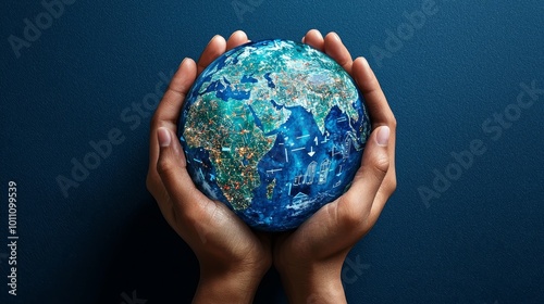 Hands holding a watercolor globe with arrows pointing to major business cities, illustrating global strategy.