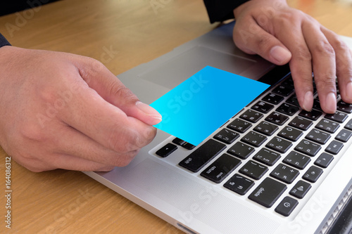 Hands holding credit card and using laptop for Online shopping or internet banking concept