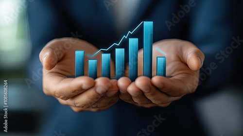 Hands Holding Digital Bar Graph Indicators Representing Business Growth and Financial Success in a Professional Environment