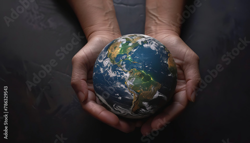 hands holding Earth Globe on black studio background