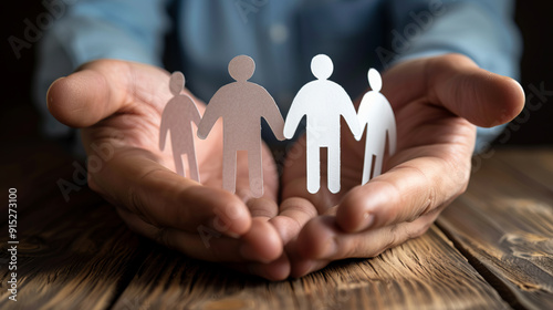 Hands Holding Paper Cutout Figures Representing Community