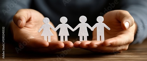 Hands Holding Paper Cutout People Symbolizing Unity and Support for Community Togetherness and Family Values : Generative AI