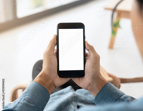 Hands Holding Smartphone with Blank Screen for Mockup Use