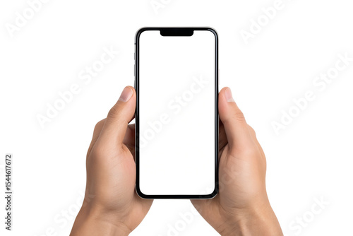 Hands Holding Smartphone with Blank Screen Mobile App Mockup