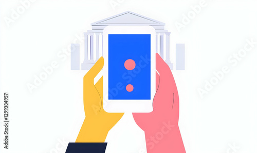 Hands Holding Smartphone with Colorful Screen and Building Background