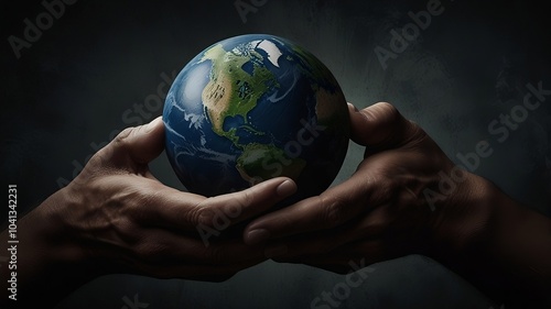 Hands Holding the Earth Globe in Dark Environment