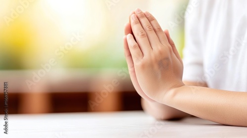 Hands in a prayer position, symbolizing peace and mindfulness.