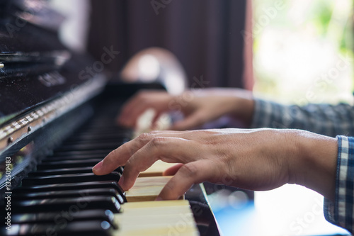 Hands musician playing the piano closeup