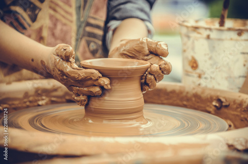 Hands of a potter at work