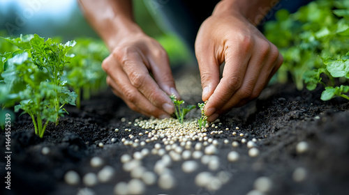 Hands Planting Seedlings in Dark Soil with Fertilizer