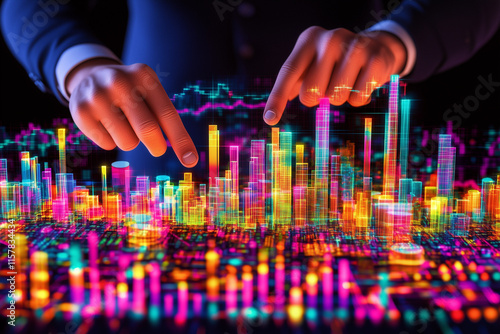 Hands Pointing at Vibrant Digital Graph for Search Engine Optimization Insights and Analysis