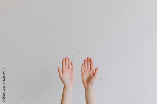 Hands Reaching Upward Against a Plain Light Background