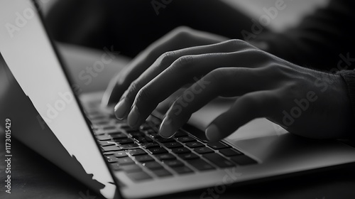 Hands typing a sleek laptop displaying AIdriven software and project management tools