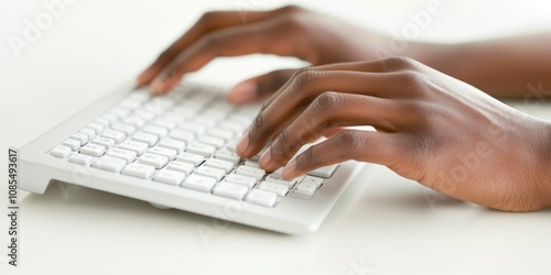 Hands typing on a keyboard, emphasizing communication and technology use.