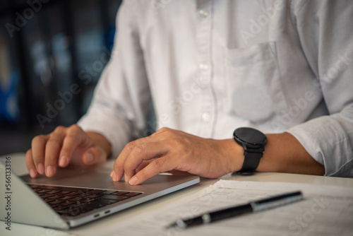 Hands typing on a keyboard.Businessman working on new project with notebook computer, job search, search internet information online, shopping online.