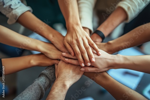 Hands United in Purpose, Strength, and Teamwork, Symbolizing Unity, Collaboration, and Collective Effort in Work
