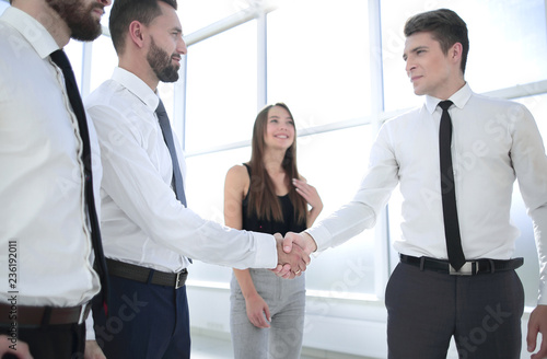 handshake between business colleagues in the office