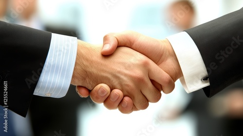 Handshake between business partners in office signaling agreement, collaboration, and partnership development for successful corporate negotiations and networking.