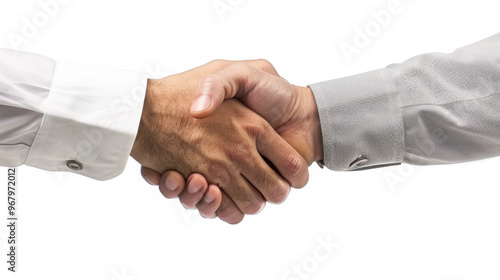 Handshake Between Real and Virtual - Online Transaction and Agreement Concept isolated on white background.