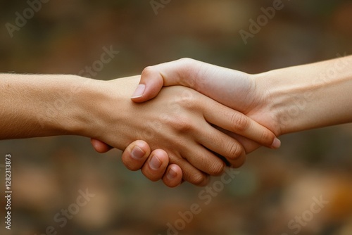 Handshake between two people symbolizing agreement and understanding in a natural outdoor setting