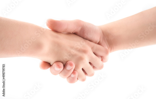 Handshake. Handshaking isolated on white background. Woman and man.