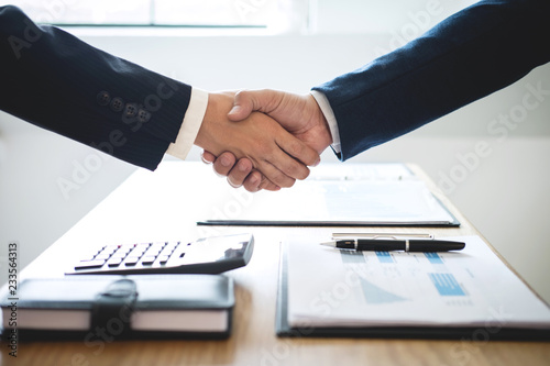 Handshake of two business people after contract agreement to become partner