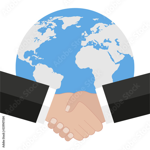 Handshake on the background of the globe. illustration of international business cooperation and partnership
