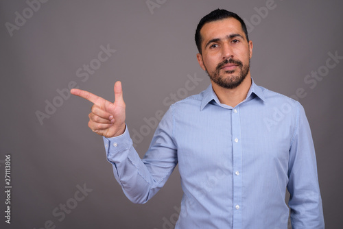 Handsome bearded Persian businessman against gray background