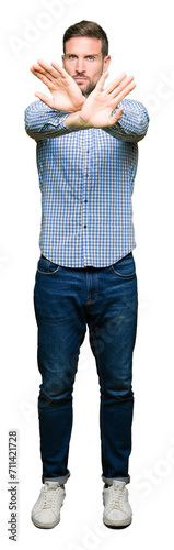 Handsome business man with blue eyes Rejection expression crossing arms and palms doing negative sign, angry face