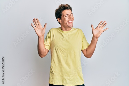 Handsome caucasian man wearing casual clothes celebrating crazy and amazed for success with arms raised and open eyes screaming excited. winner concept