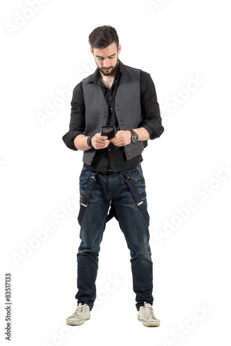 Handsome fashionable man using mobile phone