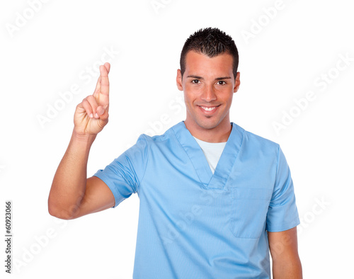 Handsome male nurse with luck sign