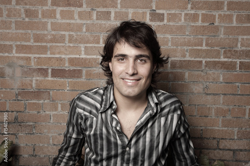 Handsome man on a brick wall