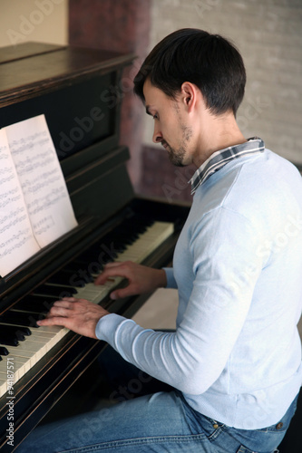 Handsome man plays piano in the class