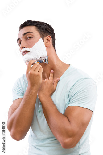Handsome man shaving isolated on white