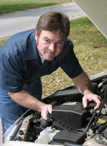 handsome mechanic under hood