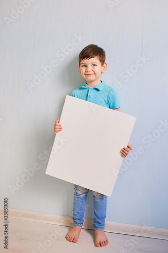 handsome stylish man standing with a sign in his hand in the studio on a blue background