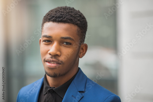 handsome young african man in a blue jacket