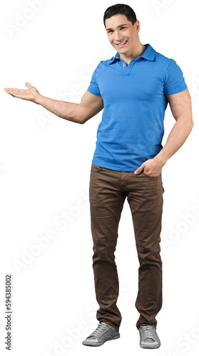Handsome young man smiling full length in shirt