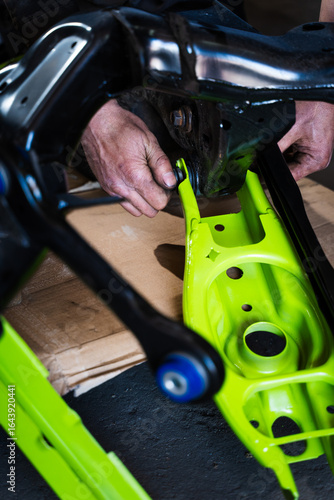 Hands-on installation process of front suspension components for a drift car build, including coilovers, angle kit, and control arms. Drift Car Suspension Installation Process.
