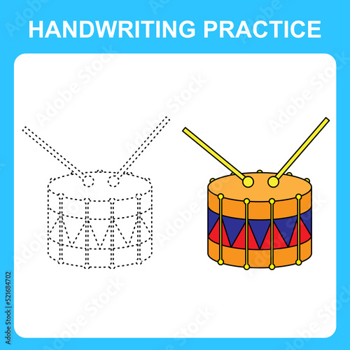 Handwriting practice. Trace the lines and color the drum. Educational kids game, coloring book sheet, printable worksheet. Vector illustration