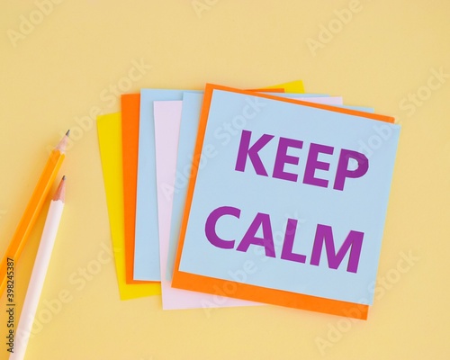 Handwriting text Keep Calm. Concept meaning Maintain in a state of motion smoothly even under pressure.KEEP CALM word on colorful notes